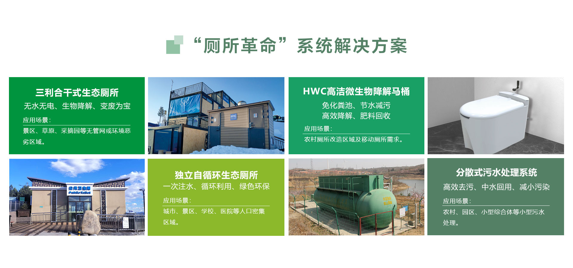 適用產(chǎn)品:HWC高潔非水沖式微生物降解型生態(tài)廁所。